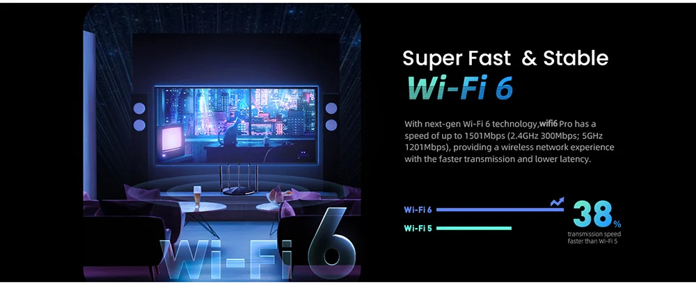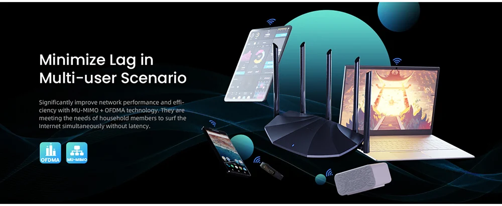 With next-gen Wi-Fi 6 Technology: Wifi6 Pro adopts MU-MIMO plus OFDMA to significantly improve network performance and efficiency, wipe out latency. Enjoy smoother and more stable streaming, gaming, downloading and more with WiFi speeds up to 1501Mbps (2.4GHz: 300Mbps, 5GHz: 1201Mbps)