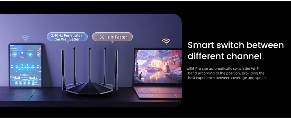 Smart Switch Between Different Channel: Wifi6 Pro can automatically switch the Wi-Fi band according to the position, providing the best experience between coverage and speed.