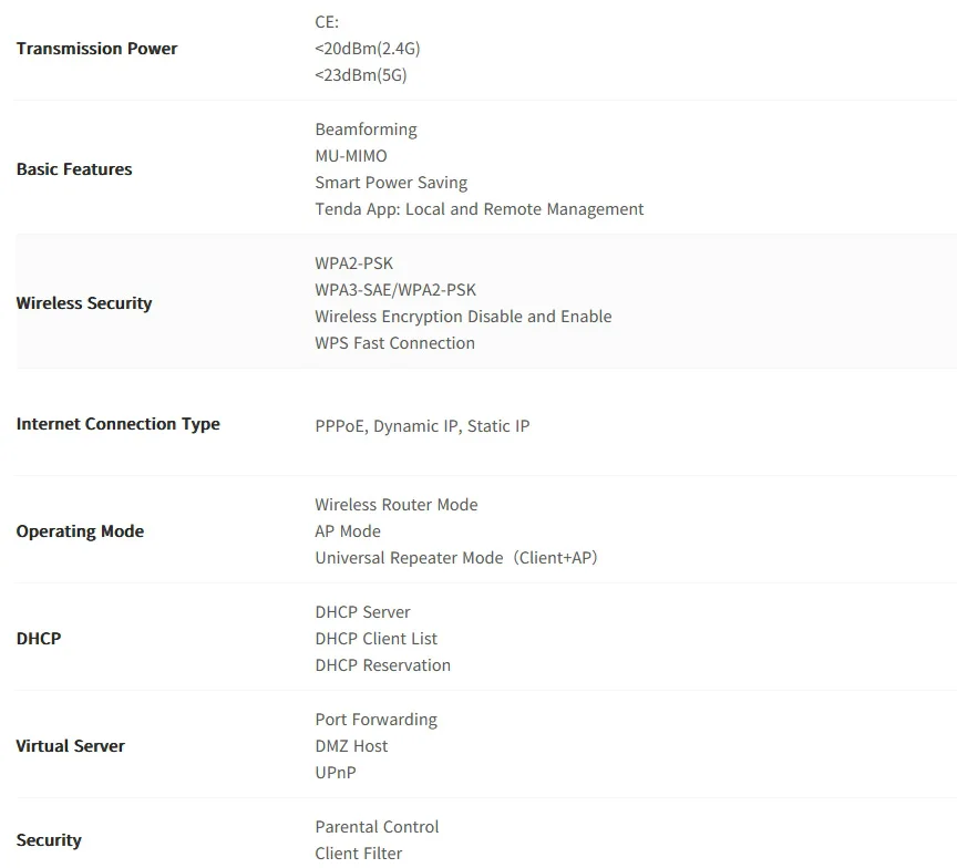 APP Smart Control&Parental Control: Wi-Fi status can be controlled remotely through the Tenda APP, even while travelling, which facilitates the real-time monitoring of routers. Tenda app easily set up and remotely manage your home network; Maintain control over children's online time and behavior, cultivate children's healthy habit of surfing the Internet.